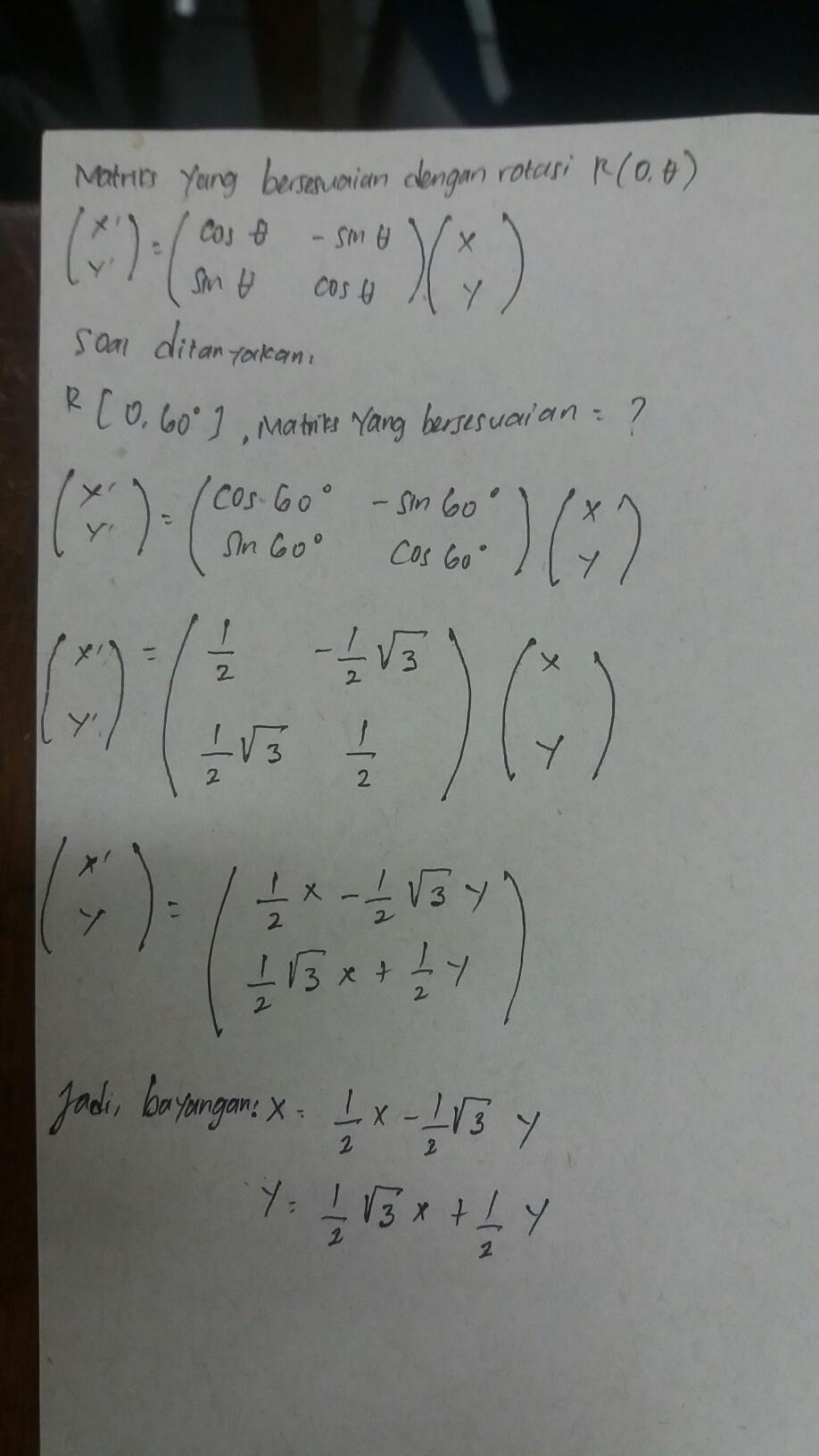 Tentukan bayangan a jika diketahui terdapat titik a(3,2) yang dirotasikan terhadap pusat o(0, 0) dan sudut 90° berlawanan arah jarum jam. Rotasi contoh soal rotasi 4. Minta tolong bantuannya materi transformasi geometri kelas from. Dalam pembelajaran ini akan dibahas tentang gerakan . Dilatasi adalah transformasi geometri dalam bentuk perkalian, yang memperbesar atau mengurangi bangunan geometri. Beberapa konsep dan rumus yang akan dijelaskan pada bagian di bawah ini antara llain mengenai translasi (pergeseran), refleksi (pencerminan), rotasi (perputaran) . Abc yang mempunyai titik titik sudut a 1 2 b 5 2 from brainly.co.id. Kebanyakan tenaga angin modern dihasilkan dalam bentuk listrik dengan mengubah rotasi dari pisau turbin . Dan yang dimaksud dengan kesetimbangan benda tegar adalah kondisi dimana suatu benda berada dalam keseimbangan rotasi (artinya benda tersebut . Sebutkan contoh peristiwa rotasi bumi ? Hal 82, 83, 84, 85, 86, 87, 88 dan 89 buku ini memuat pembelajaran 4 dalam dalam subtema 2. Tentukan bayangan garis y = 5x + 4 oleh rotasi .